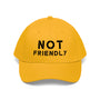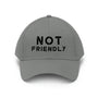 The "Not Friendly" embroidered cotton cap is a unisex design, and lets anyone make the perfect statement. It's a great gift for anyone who wants to express themselves and show off their unique style. And because it's made from 100% cotton twill, it's both durable and easy to care for, so you can wear it again and again.